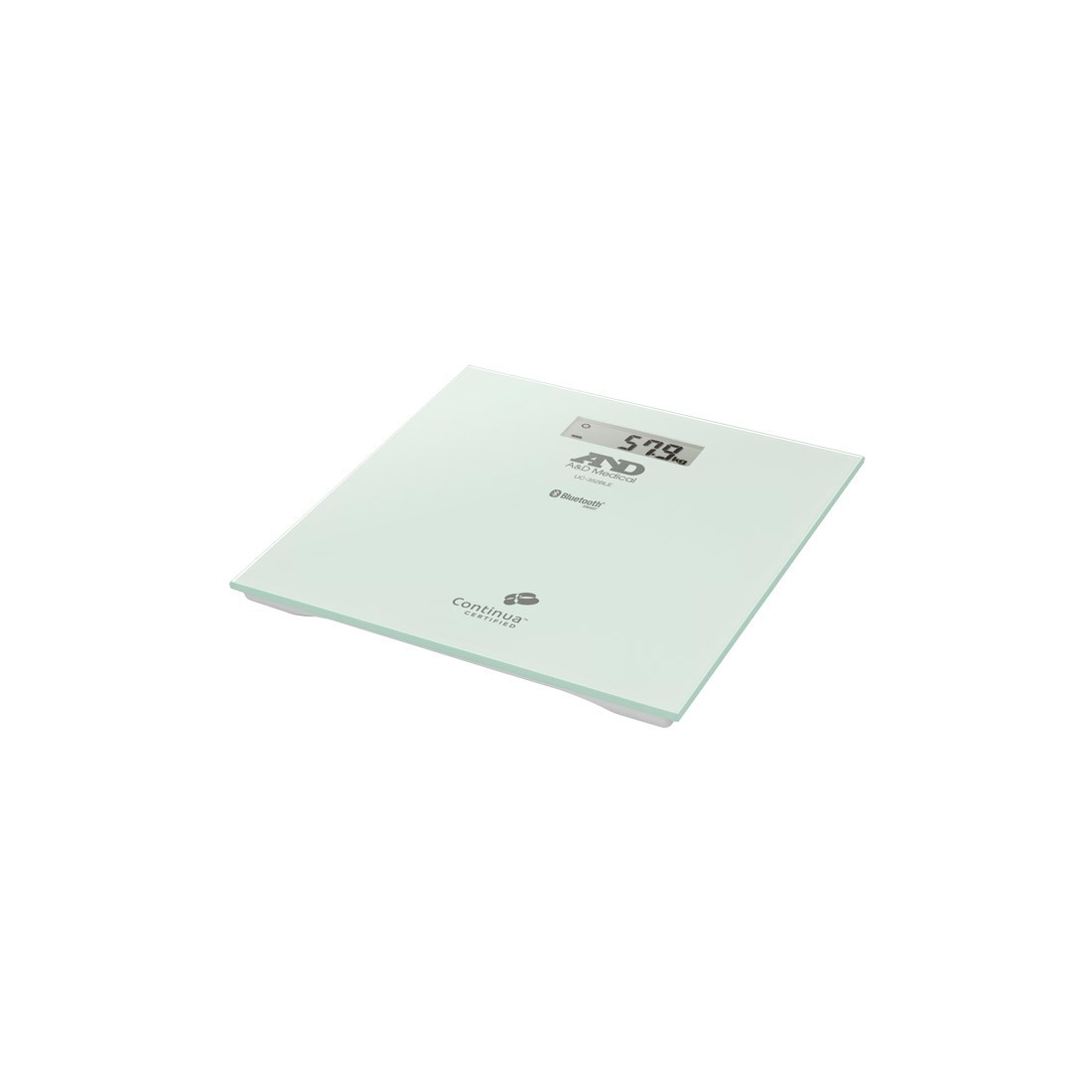 Bilancia pesa persone, parte integrante del sistema A&D TeleHealth insieme al misuratore UA-651BLE.